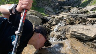 Running with a bladder has the advantage that the extra weight is being carried in a place you are unlikely to notice it (1ltr of water weighs 1kg), and also has the advantage that you can easily sip smaller amounts while you run. The disadvantages include that you can’t see how much water you have left, bladders are notorious for leaking, they can be difficult to clean, the water can become warm if pressed up against your body, and filling the bladder up can logistically be challenging in a full backpack. Flasks held on the side of your pack can also be useful, but make sure they do not get in the way of your arm swing. Soft flasks carried in the front of your pack are a relatively new addition to the running scene and are surprisingly robust for their light weight. They can also squash down as you drink more from them. They can be slightly trickier to fill up at an aid station, than a bottle which can be placed down as you tighten the lid back on.